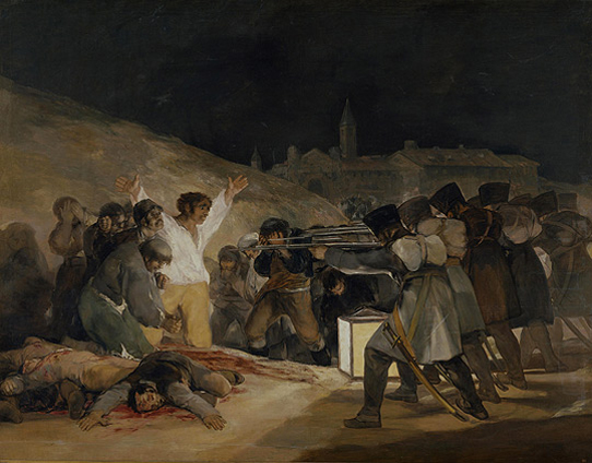 En la madrugada del 3 de Mayo de 1808 tuvo lugar el fusilamiento de 43 insurgentes madrileños en la montaña de Príncipe Pío. Esa escena fue inmortalizada por Goya en una pintura de gran dramatismo.
